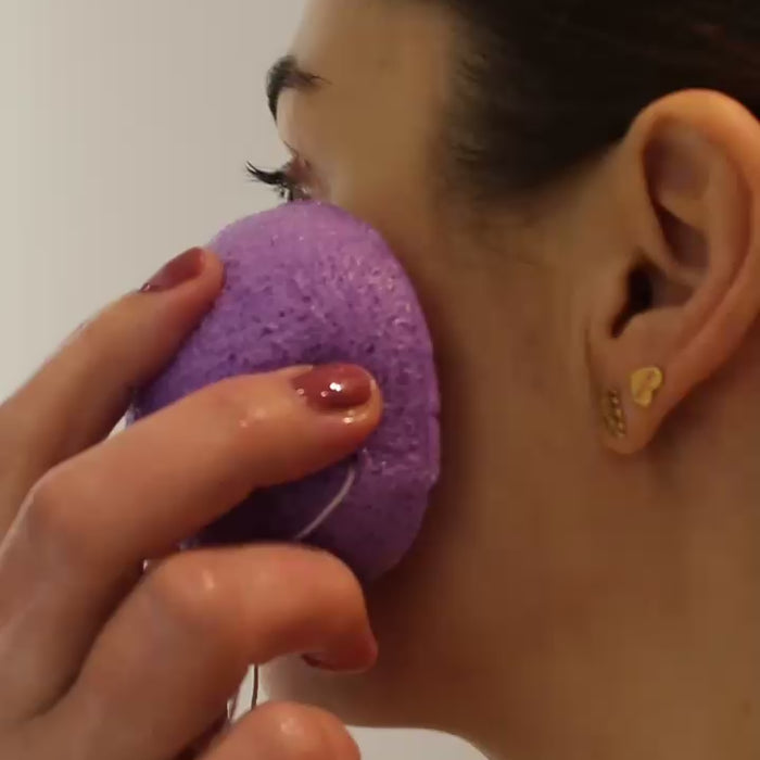 Blødgør svampen ved at holde den i vand eller under den rindende vandhane. Brug altid kun svampen i våd tilstand. Påfør dit renseprodukt på ansigtet eller svampen og brug den i cirkulære bevægelser i hele ansigtet, samt hals og decolte. Må bruges på de sarte øjenomgivelser. Skyl den efter brug og hæng den til tørre udenfor bruseområdet, da fugten herfra vil nedbryde svampen hurtigere.